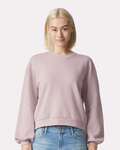 American Apparel Ladies 7.6 Ounce Crewneck Sweatshirt. 7.6 oz/SqYd, 31/1. 70% combed ring spun cotton, 20% recycled polyester, 10% polyester. 3-end lightweight fleece made using a portion of recycled polyester. 100% combed ring spun cotton face for cotton friendly decorating techniques. Made with OEKO-TEX certified low-impact dyes. 1" Rolled back dropped shoulder seam for added decoration. Back neck patch for easy customization. Balloon sleeves. 1x1 rib with spandex for enhanced stretch and recovery. Boxy fit, slightly cropped, side seamed body. Recycled tear away label.