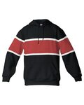 BDG ADT UNITED FLC HOOD 9.5 oz. Ring spun 60% Cotton/ 40% Polyester. Badger Sport paneled shoulder for maximum movement. Two ply hood. Self-Fabric printable inset panels on body and arms with edge overlay stripes. Spandex reinforced rib knit cuffs and waistband. Front pouch pocket. Embroidered B logo on left sleeve.