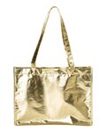 Liberty Large Metallic Tote Bag. 90 gram polypropylene with metallic coating. Self-fabric 28 handles. Suitable for one-color imprints. Air dry only. Recyclable. 16 x 12 x 6