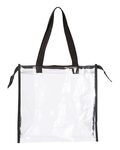 OAD Clear Zippered Tote With Full Gusset. Transparent tote bag made with double-polished 100% PVC. Double zipper pull made with 600D material. 6 gusset. 29.5 carrying handles. Stadium compliant. 12 x 12x 6.